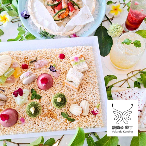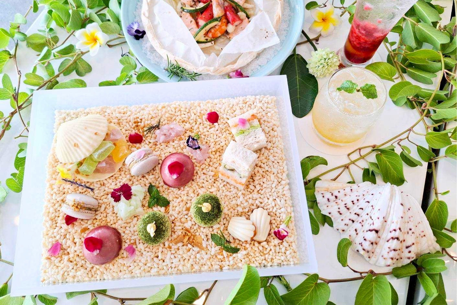 ※餐點內容:紙包海鮮+6款小甜點+氣泡飲特調兩杯。