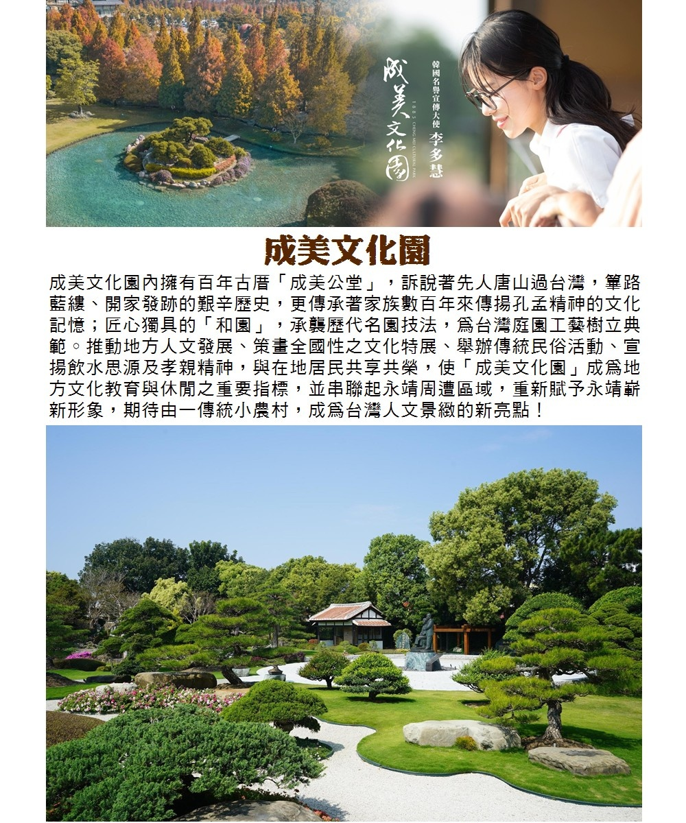 1.單張可於開園時間內單人進入成美文化園入園乙次(含$100元抵用券)。