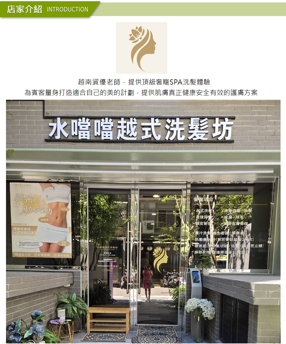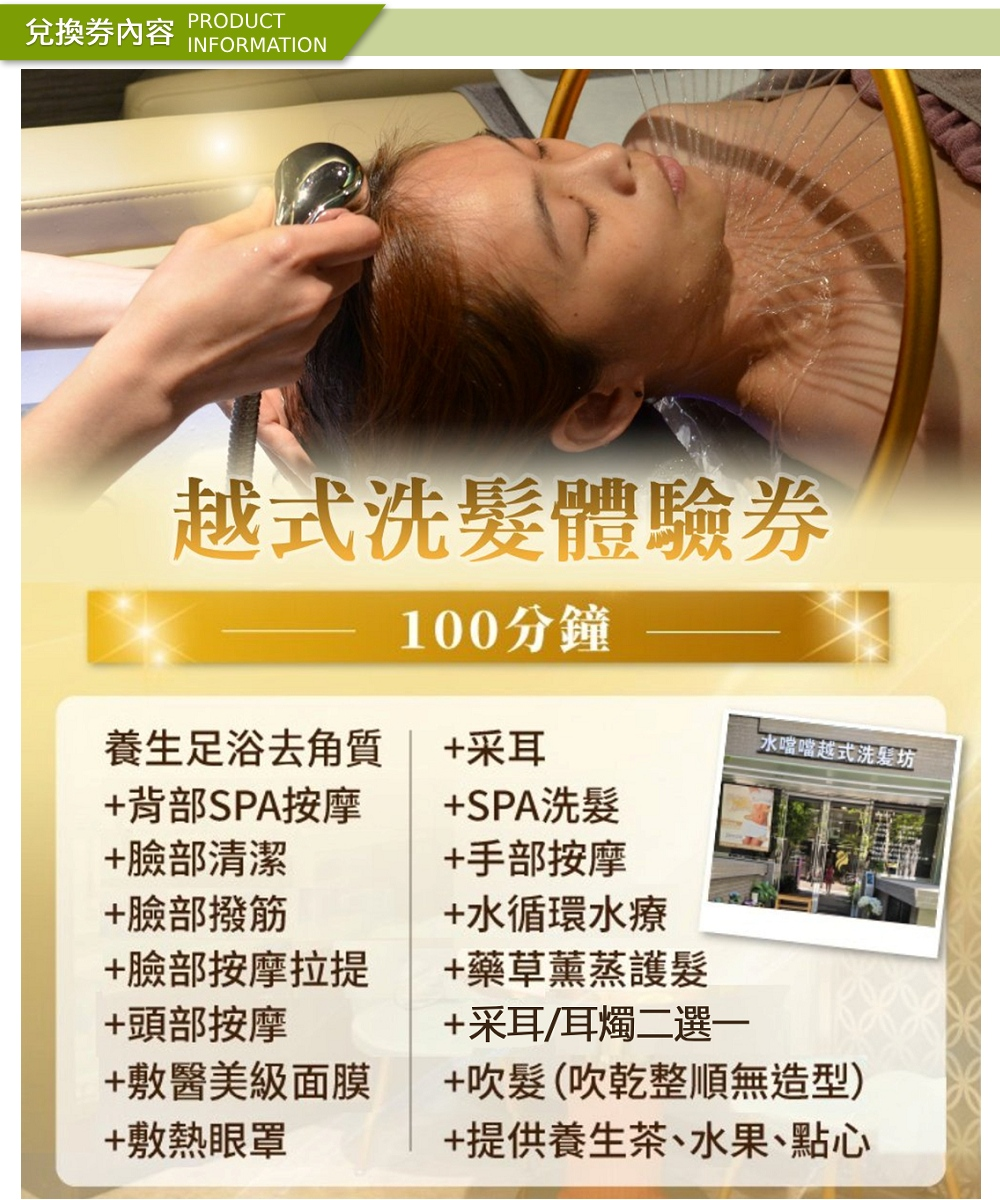 1.本券可1人至水噹噹越式洗髮坊體驗越式洗頭100分鐘。