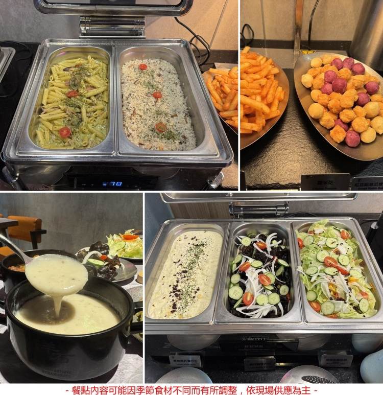 ●自助吧無限享用:開胃菜、沙拉、湯品、麵包、燉飯、炸物、飲品、甜點...等。