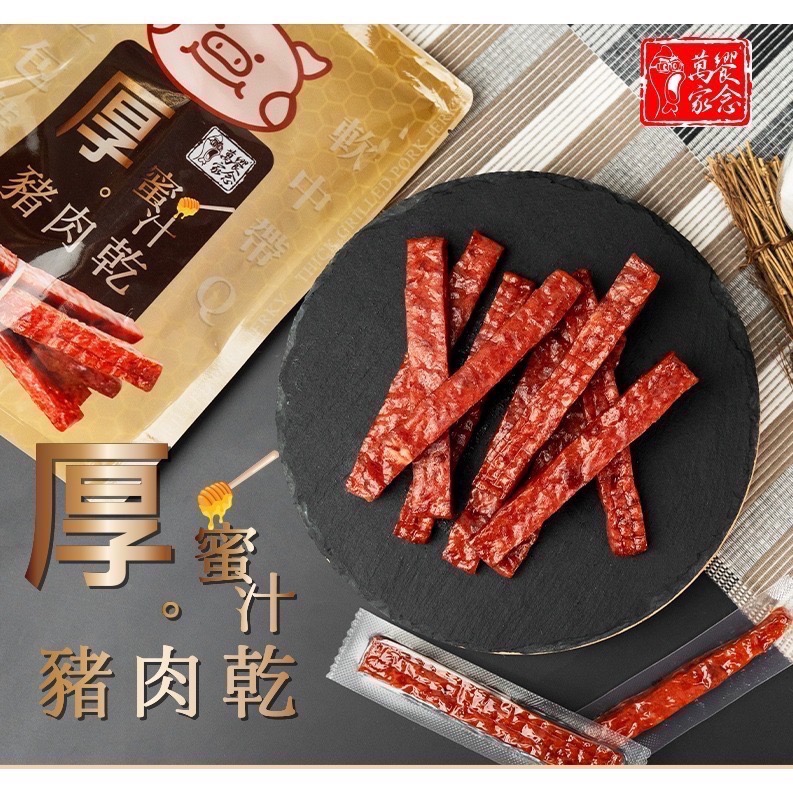 每一條都有獨立真空包裝! 加上獨門秘方和香甜蜜之使豬肉的肉香濃郁、色澤誘人。 選用台灣豬後腿肉,製成厚達1cm的肉條,Q彈蘊含肉汁。