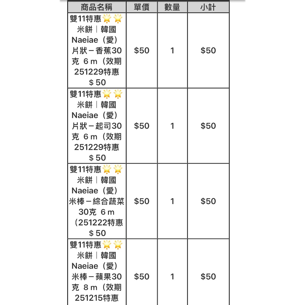 訂購商品詳如截圖所示。