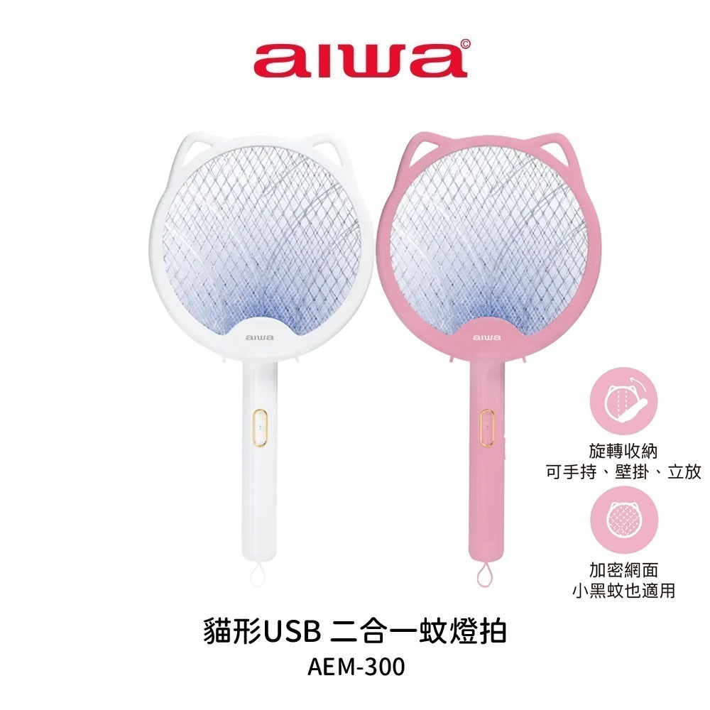 【aiwa 愛華】貓形USB二合一捕蚊燈拍 AEM-300(白色/粉色)
