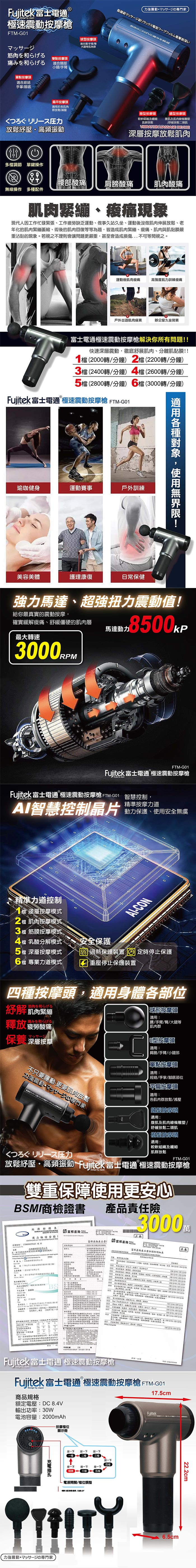 Fujitek 富士電通 無線極速震動按摩槍 FTM-G01 六顆按摩頭 筋膜槍 6檔力道 交換禮物 父親節禮物