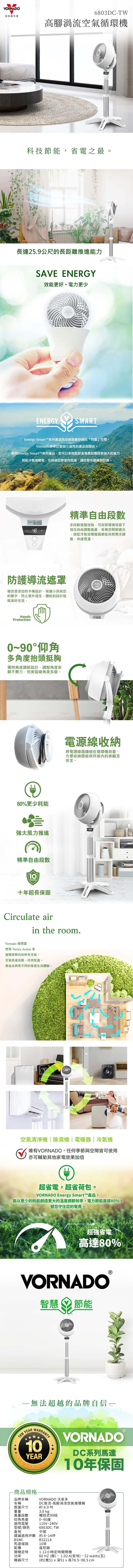美國VORNADO沃拿多 6803DC-TW 高腳DC直流渦流空氣循環扇