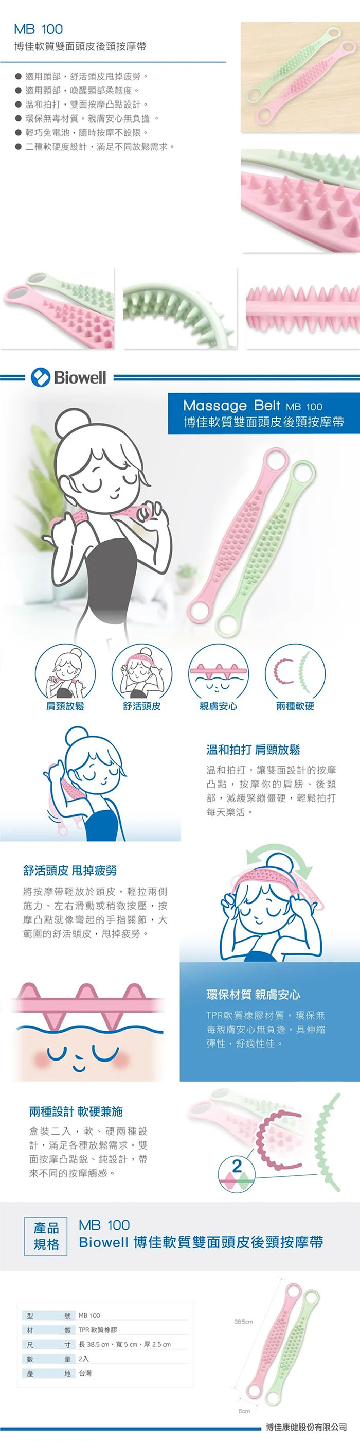 【Biowell 博佳】 軟質雙面頭皮後頸按摩帶 MB 100