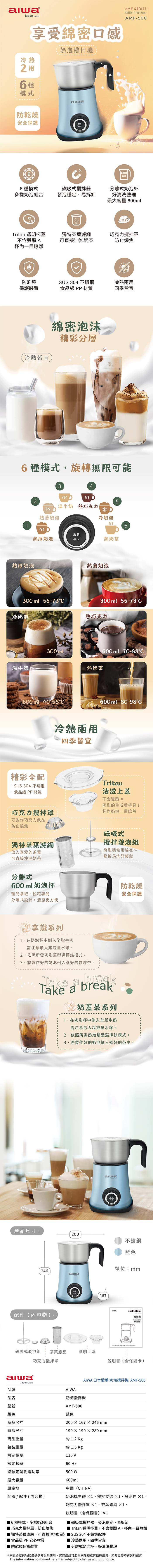 【AIWA 愛華】奶泡攪拌機 AMF-500 藍
