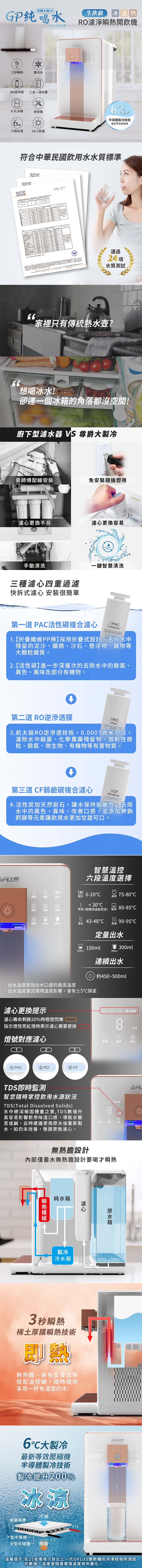 產品內容:主機*1/接水盒*1/水箱*1/RO濾心*1/PAC濾心*1/CF濾心*1/說明書*1