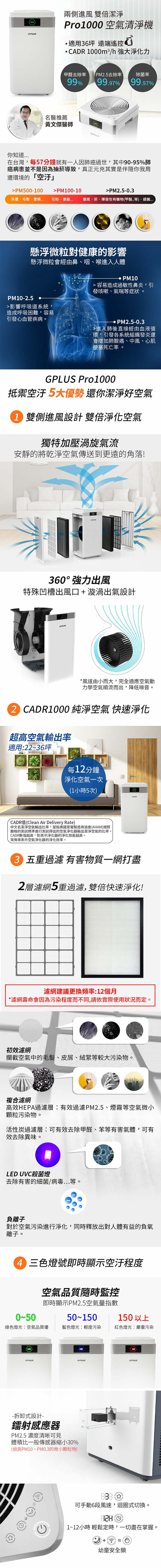 【GPLUS】 雙側進風空氣清淨機 PRO1000