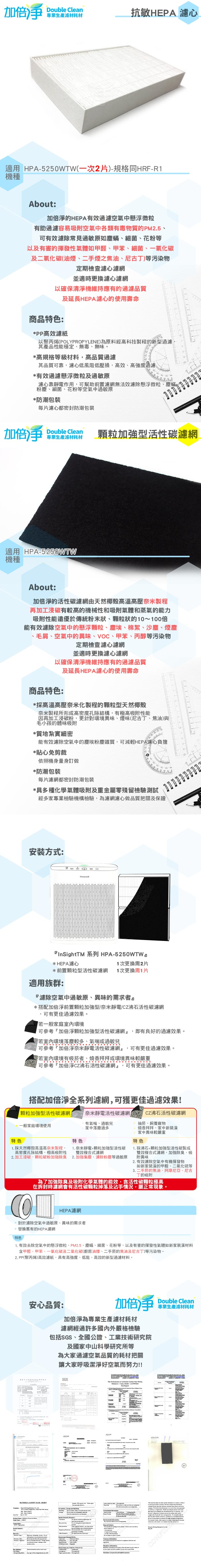 【加倍淨】適用Honeywell HPA-5250WTW HPA-5250WTWV1 清淨機 耗材組-濾心*2+濾網*4
