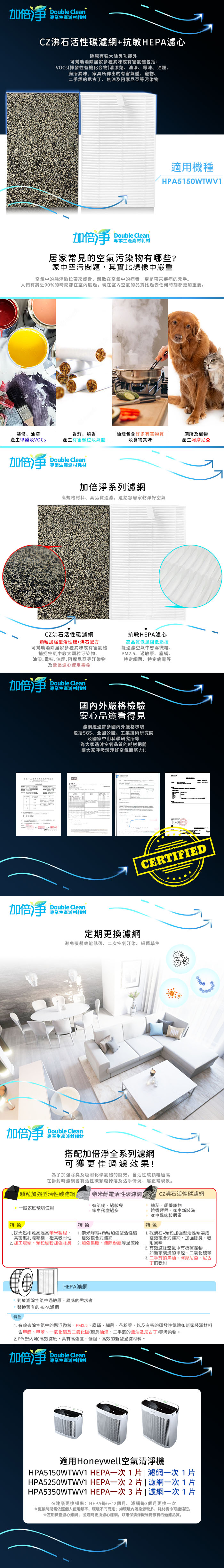 【加倍淨】適用 Honeywell HPA-5150WTWV1 HPA5150WTWV1 5150 清淨機 CZ耗材組
