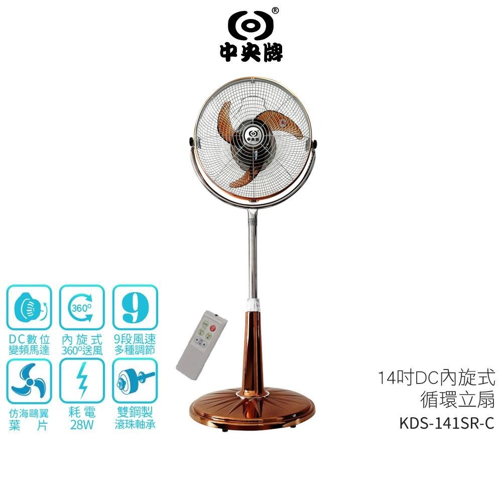 【中央牌】KDS-141SR / KDS-141SR-C 古典銅 14吋DC節能內旋式遙控型9段式循環立扇-厚底旗艦款