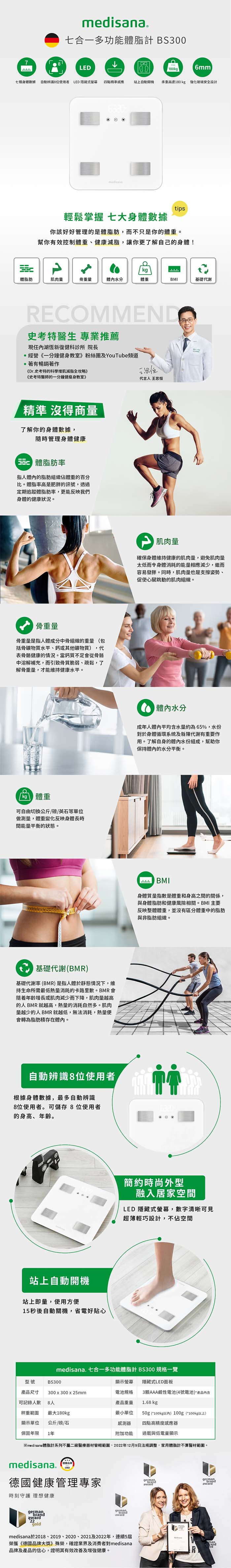 德國 medisana 七合一多功能體脂計 BS 300 / BS300 (白)【恆隆行原廠正貨】