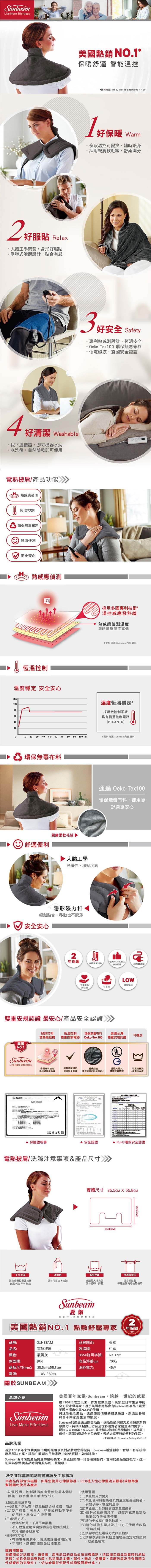 美國 夏繽Sunbeam 電熱披肩 氣質灰 (肩頸專用熱敷墊) 000885 台灣原廠公司貨 二年保固