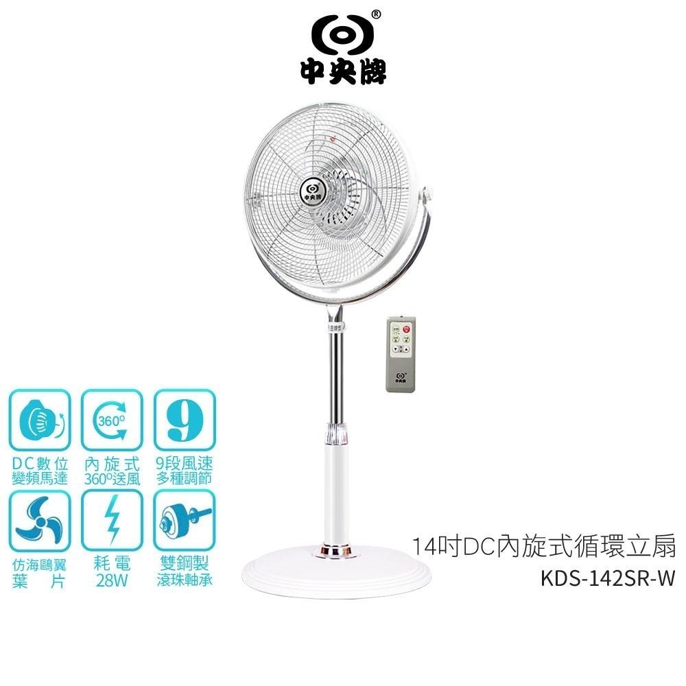【中央牌】14吋DC節能內旋式遙控循環立扇 KDS-142SR / KDS-142SR-W 絢麗白