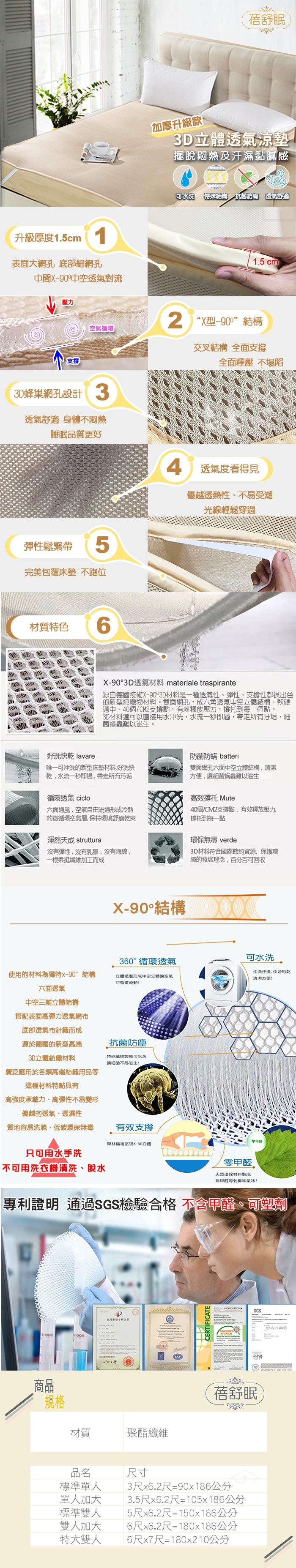 蓓舒眠 3D立體彈簧透氣水洗涼墊 加厚升級版 單人3尺/單人加大3.5尺/雙人5尺/雙人加大6尺/雙人特大6*7尺