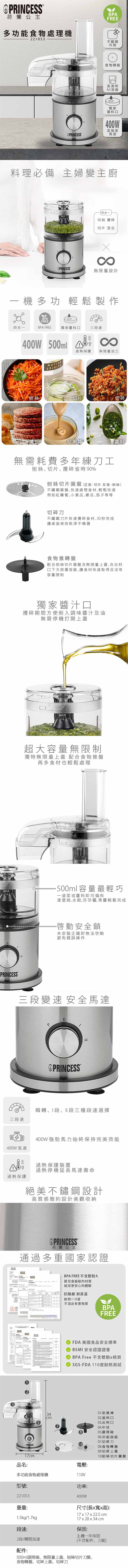 【PRINCESS荷蘭公主】 迷你多功能食物處理機 221053