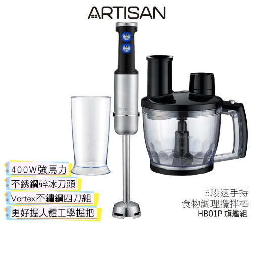 【ARTISAN 奧堤森】 5段速手持食物調理攪拌棒 HB01P 旗艦組