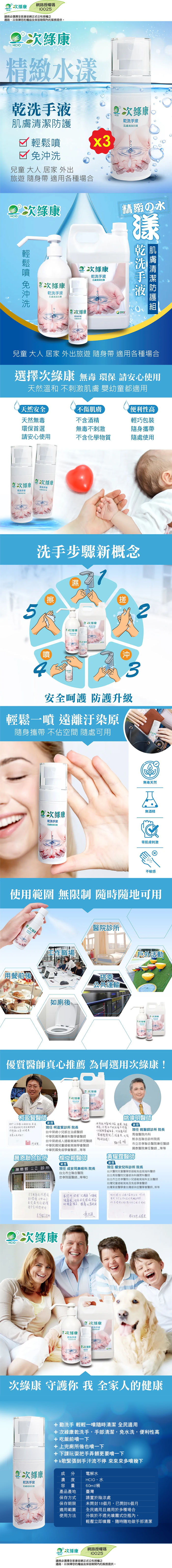 【次綠康】精緻水漾乾洗手液60ml 三入優惠組