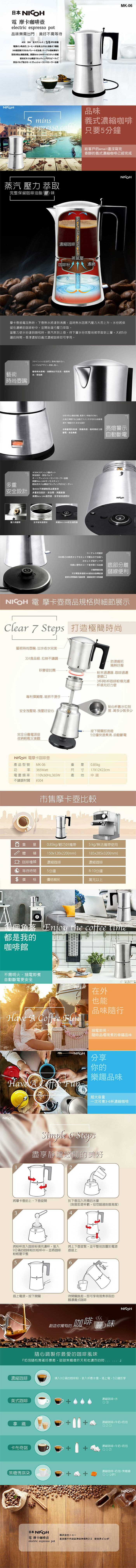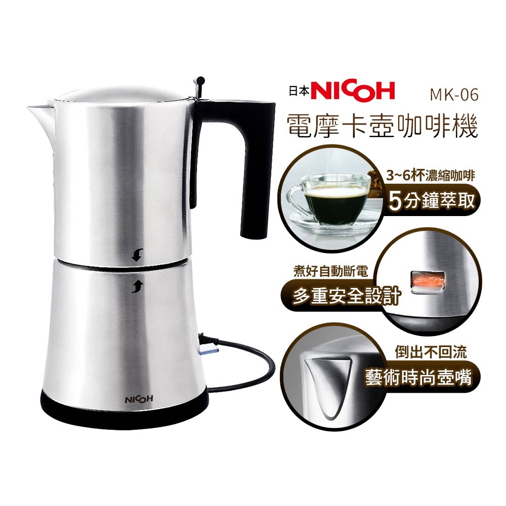 送食品防潮封口夾【日本 NICOH】 電動摩卡咖啡壺 MK-06 3~6人份 304不鏽鋼 摩卡壺