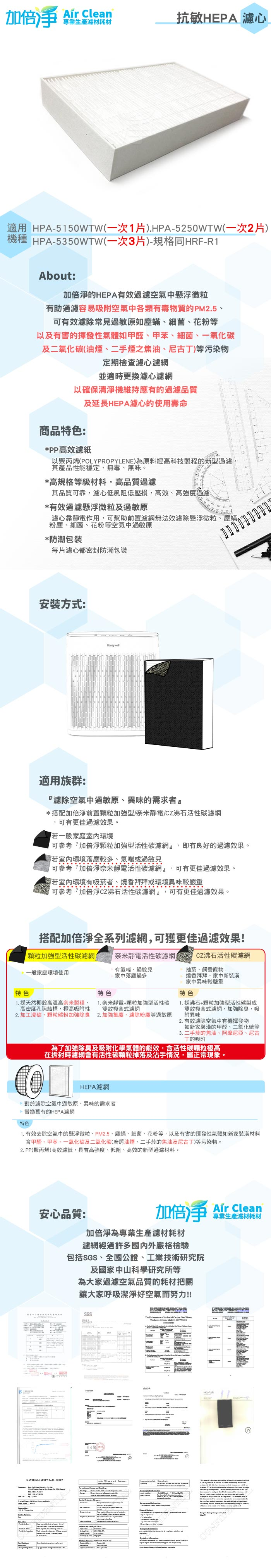加倍淨 1年份耗材組 適用 HONEYWELL HPA-5150WTW 1片抗敏HEPA+4片顆粒加強型活性碳濾網