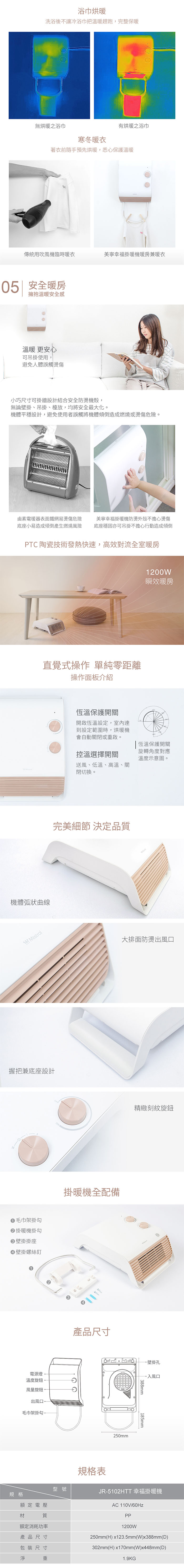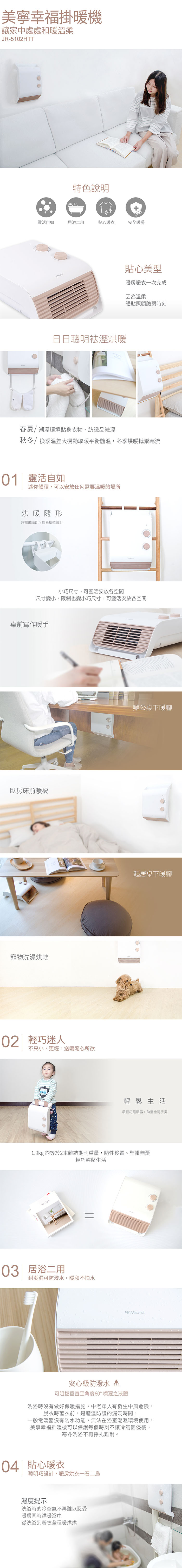 【Mistral美寧】幸福掛暖機/浴室暖風機 JR-5102HTT 防潑水/毛巾烘暖/免鑽孔/電暖器/烘衣
