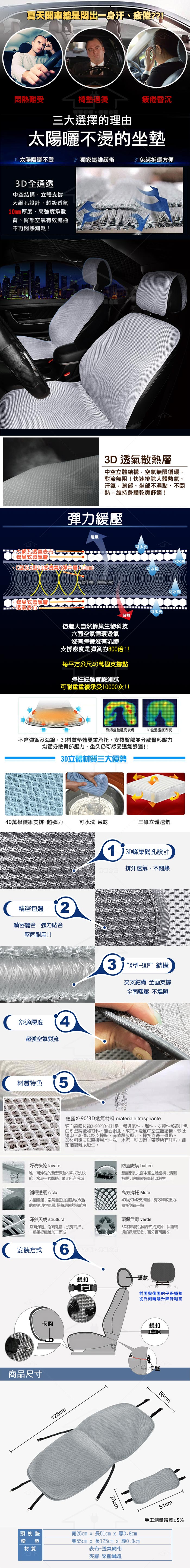 【蓓舒眠】3D立體透氣汽車前座坐墊2入 (2張汽車椅墊+2個頭枕墊)