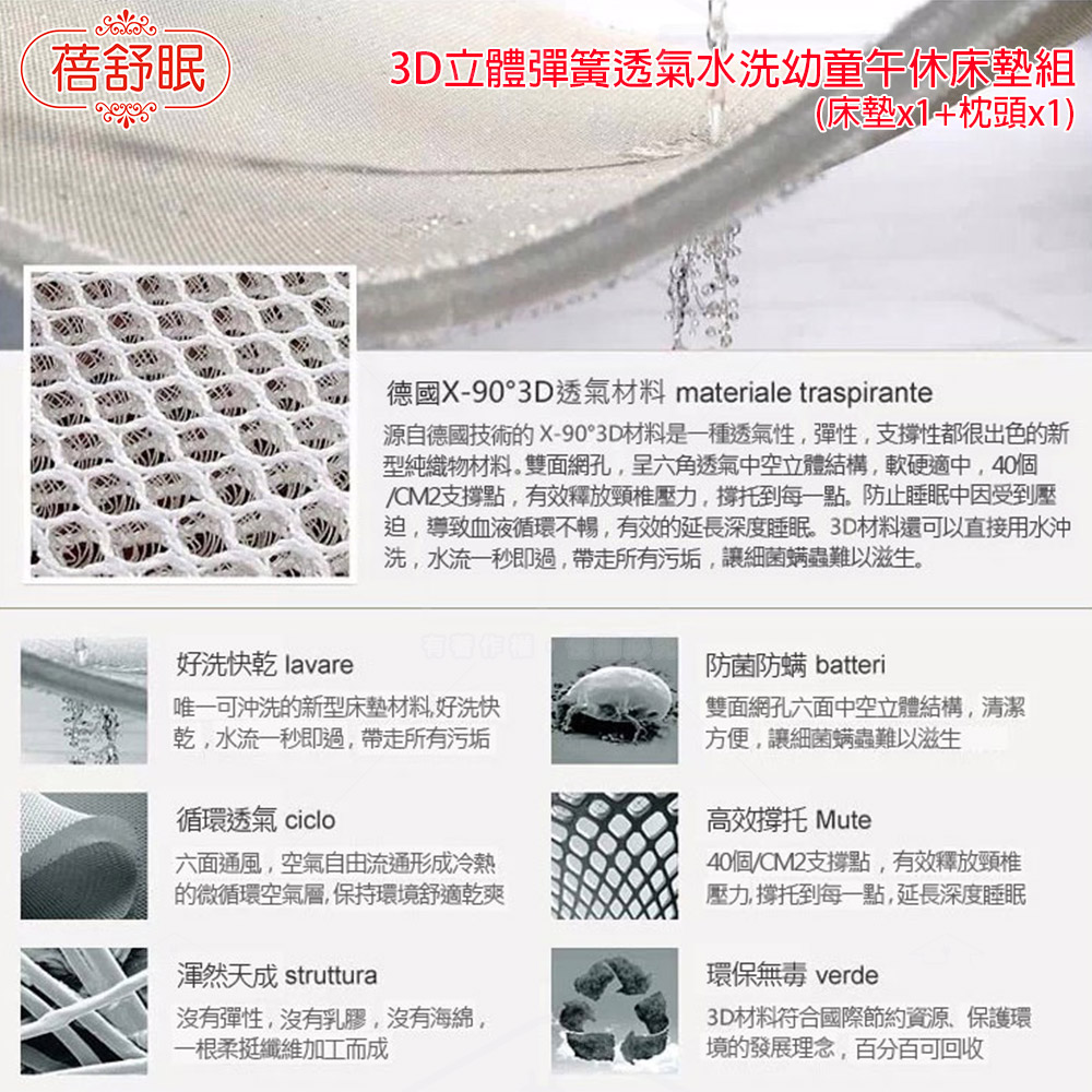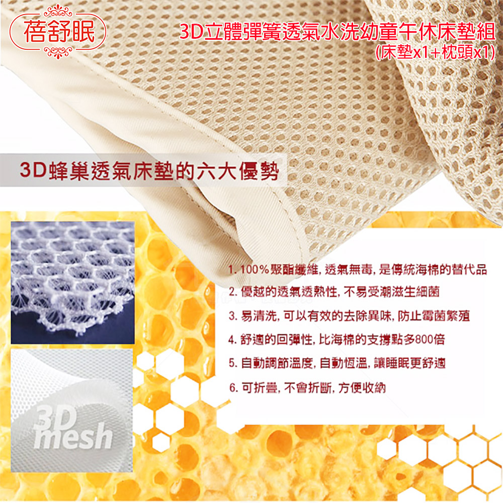【蓓舒眠】3D立體彈簧透氣水洗幼童午休床墊組(1墊1枕)