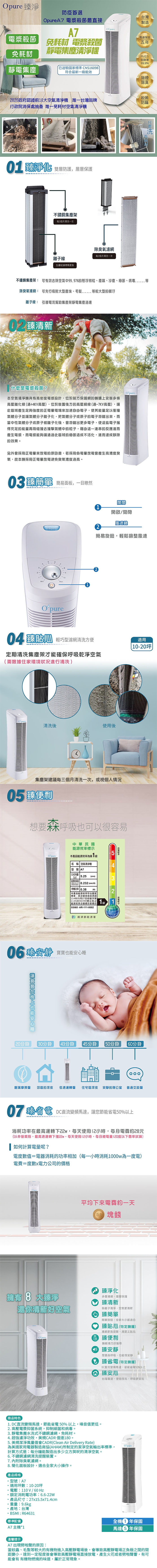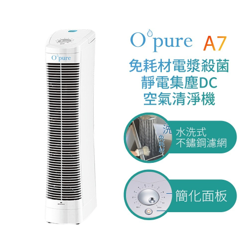 【Opure 臻淨】A7 免耗材 電漿殺菌 靜電集塵 DC節能空氣清淨機 一級能效 台灣製造 省電省錢 過敏 除臭 抗菌