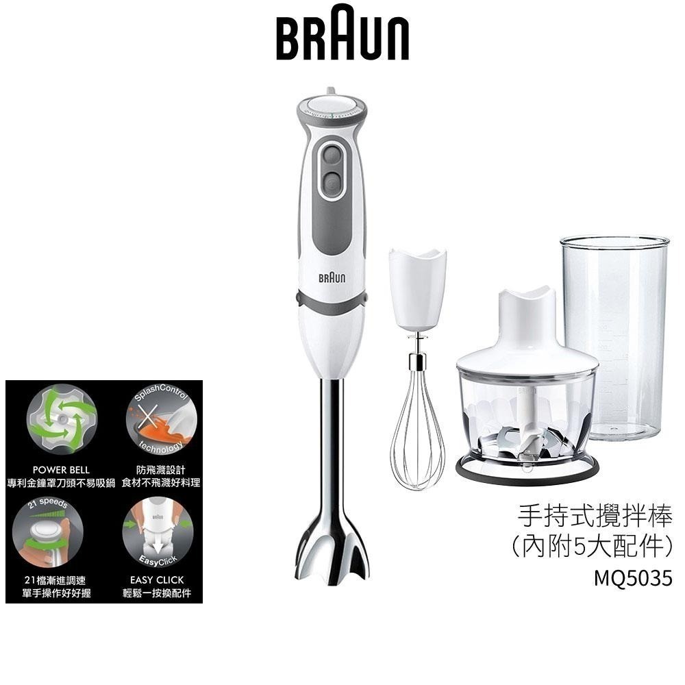 【BRAUN 德國百靈】手持式攪拌棒 MQ5035 附五大配件 三段速|不鏽鋼刀頭|料理機|副食品 果汁 濃湯