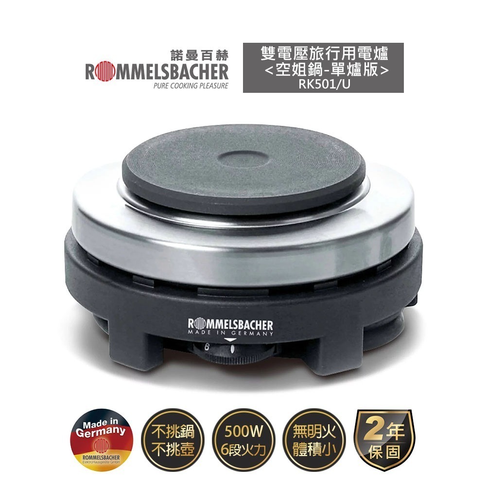 【德國諾曼百赫 ROMMELSBACHER】雙電壓旅行用電爐 RK501/U【空姐鍋-單爐版】不含鋁鍋與收納袋