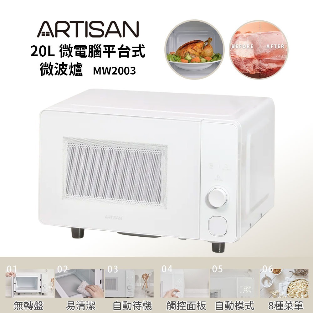 【ARTISAN奧堤森】 20L微電腦平台式微波爐 MW2003