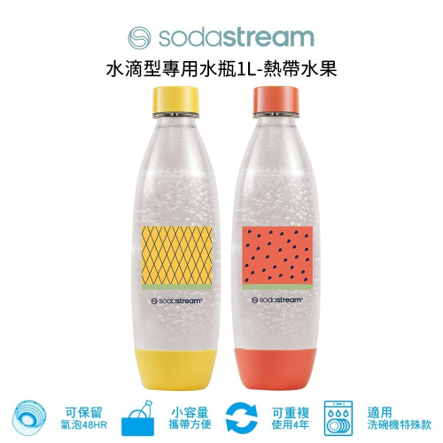 SodaStream 水滴型專用可機洗水瓶 1L 熱帶水果