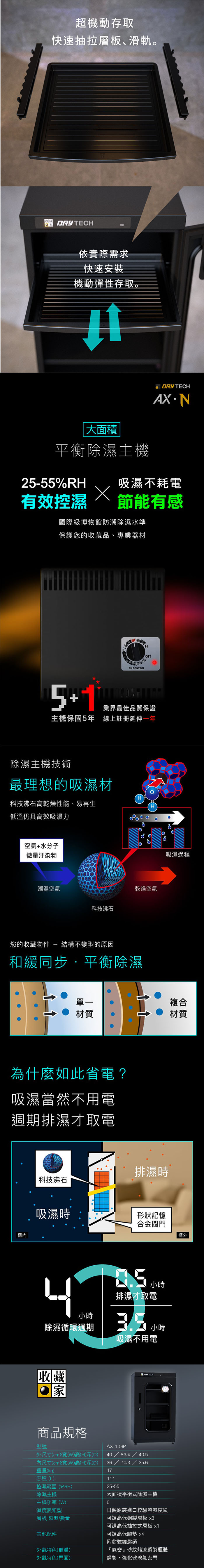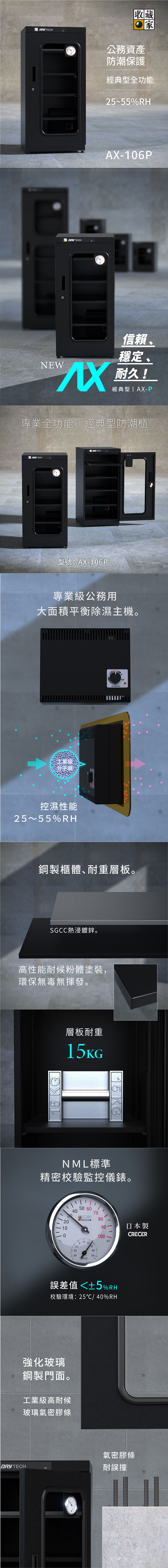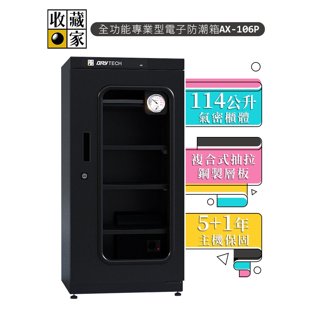 【收藏家】114公升專業型電子防潮箱 AX-106P 日製溼度儀/複合式抽拉及鋼製層板/公務機關首選