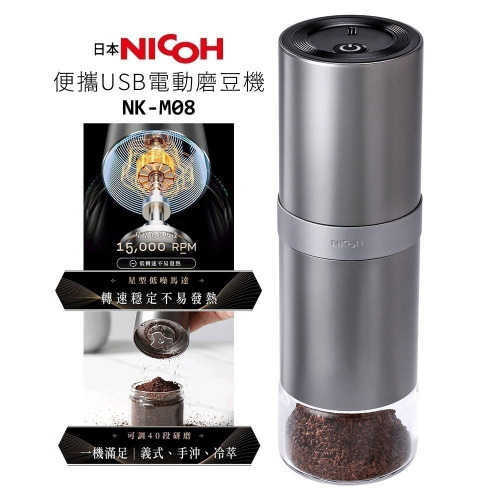 【日本NICOH】便攜USB電動磨豆機 NK-M08 便攜式磨豆機 | 磨豆機 | 輕量磨豆機 | 40段研磨