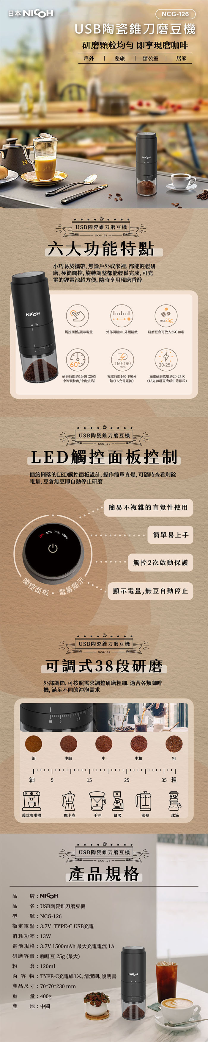 【日本NICOH】 USB陶瓷錐刀磨豆機 NCG-126