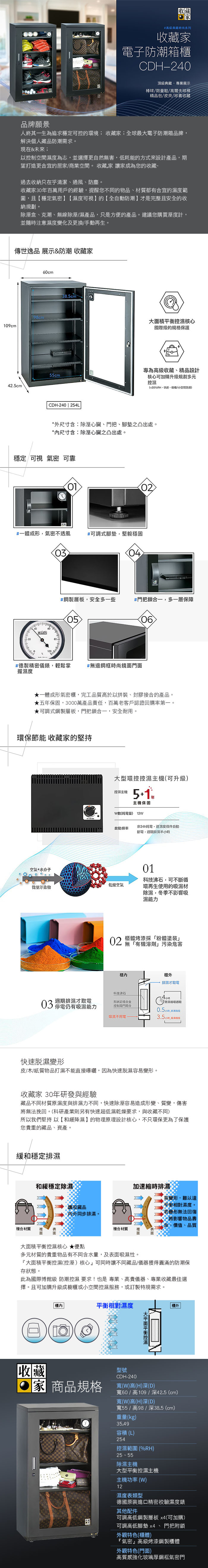 【收藏家】 254L時尚收藏防潮箱 CDH-240