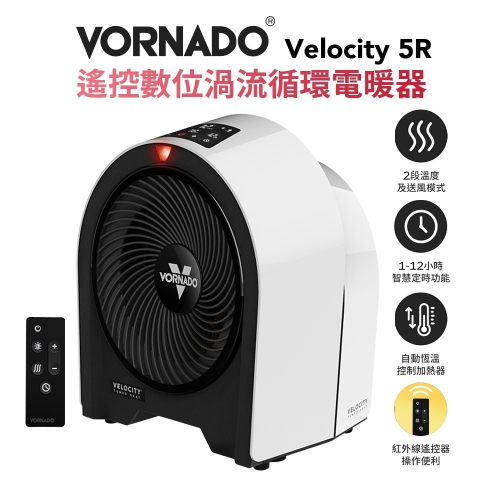 【VORNADO 沃拿多】Velocity 5R 遙控數位渦流循環電暖器 適用5~8坪 三段模式 不導熱機身 遙控功能