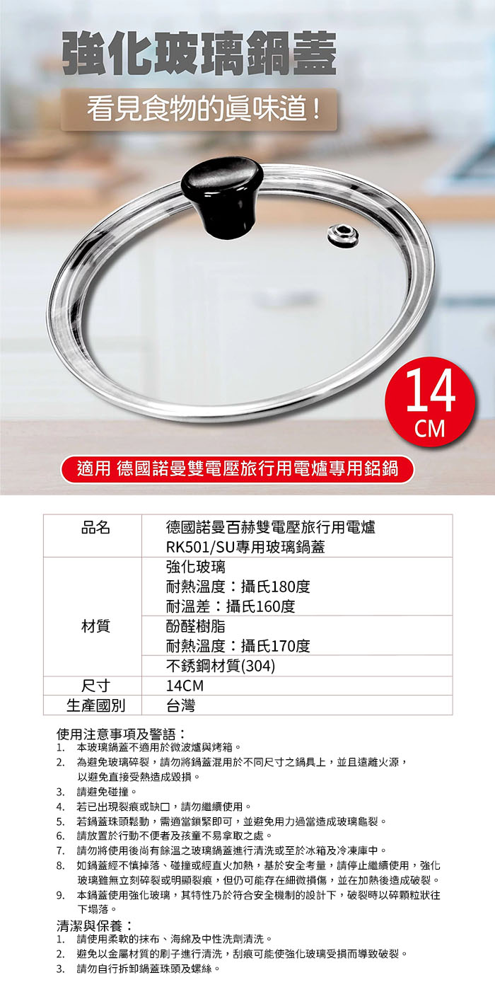 【德國諾曼百赫ROMMELSBACHER】強化玻璃鍋蓋14cm (適用諾曼百赫雙電壓旅行用電爐 RK501/SU )