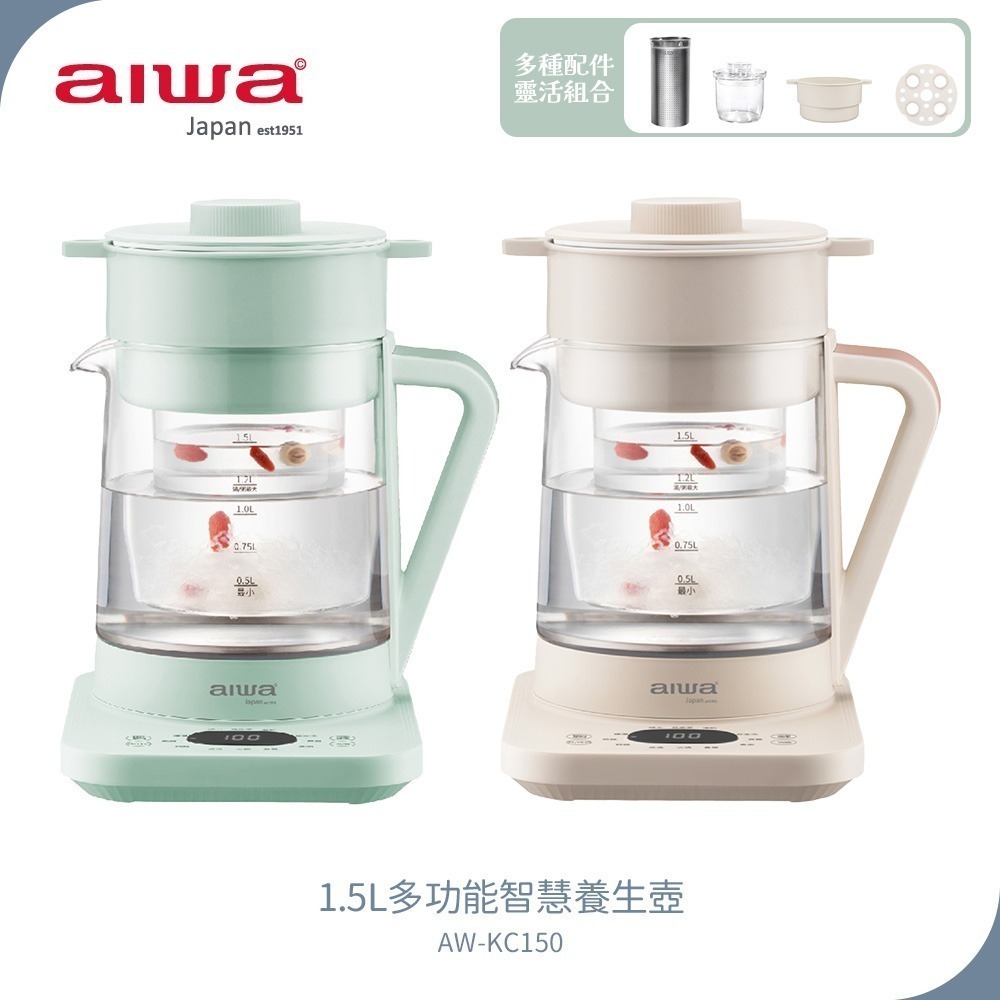 【AIWA 愛華】1.5L 多功能養生壺 AW-KC150 米白/沐青 快煮壺 蒸籠 燉盅 煮茶器 美食鍋 泡茶壺