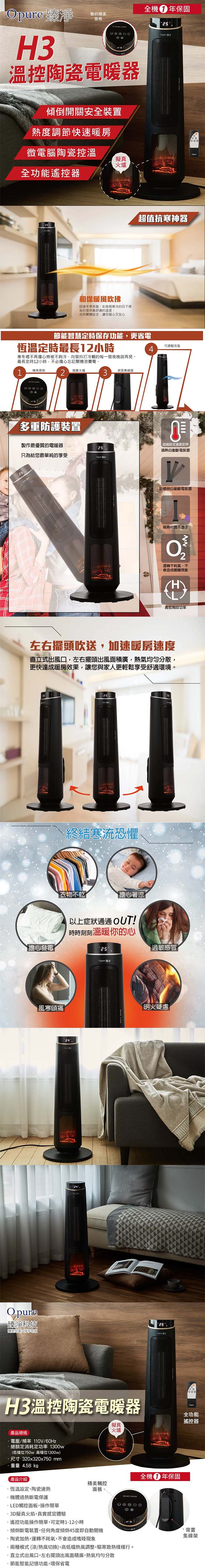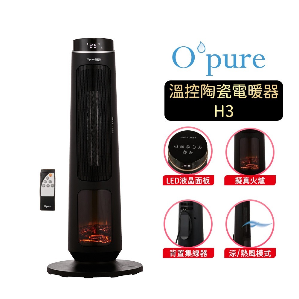 【Opure 臻淨】H3 溫控陶瓷電暖器 適用10-20坪 寒流救星 (3D擬真火焰 真實感官體驗) 速熱 直立電暖器