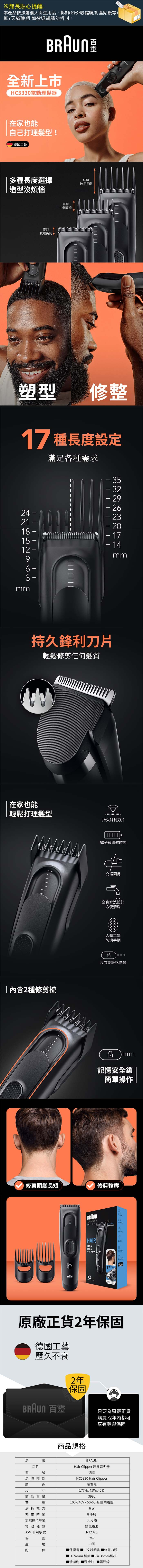 送剪髮圍裙【德國百靈 BRAUN】Hair Clipper 電動理髮造型器 HC5330 電動理髮 剪髮器