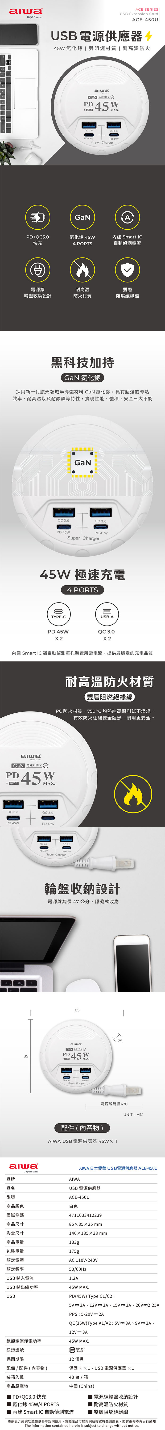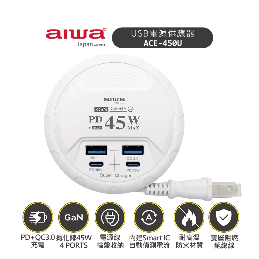 日本【愛華AIWA】ACE-450U USB電源供應器 45W