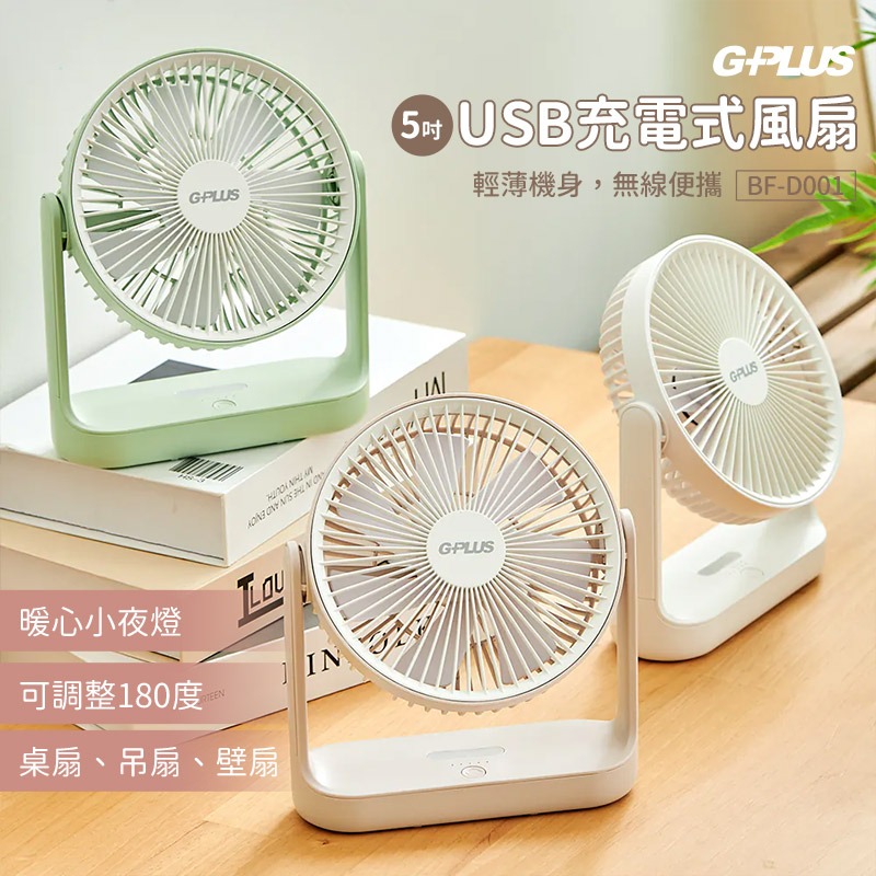 【G-PLUS】 5吋USB充電式風扇 BF-D001 三色 桌扇 吊扇 壁扇 電扇 USB風扇 露營