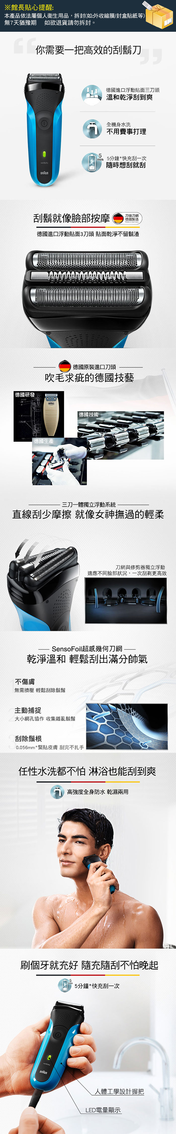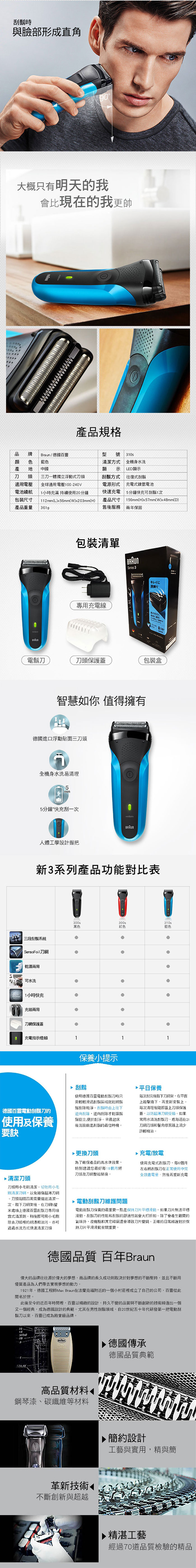 【BRAUN 德國百靈】 三鋒系列電鬍刀 310s 藍色