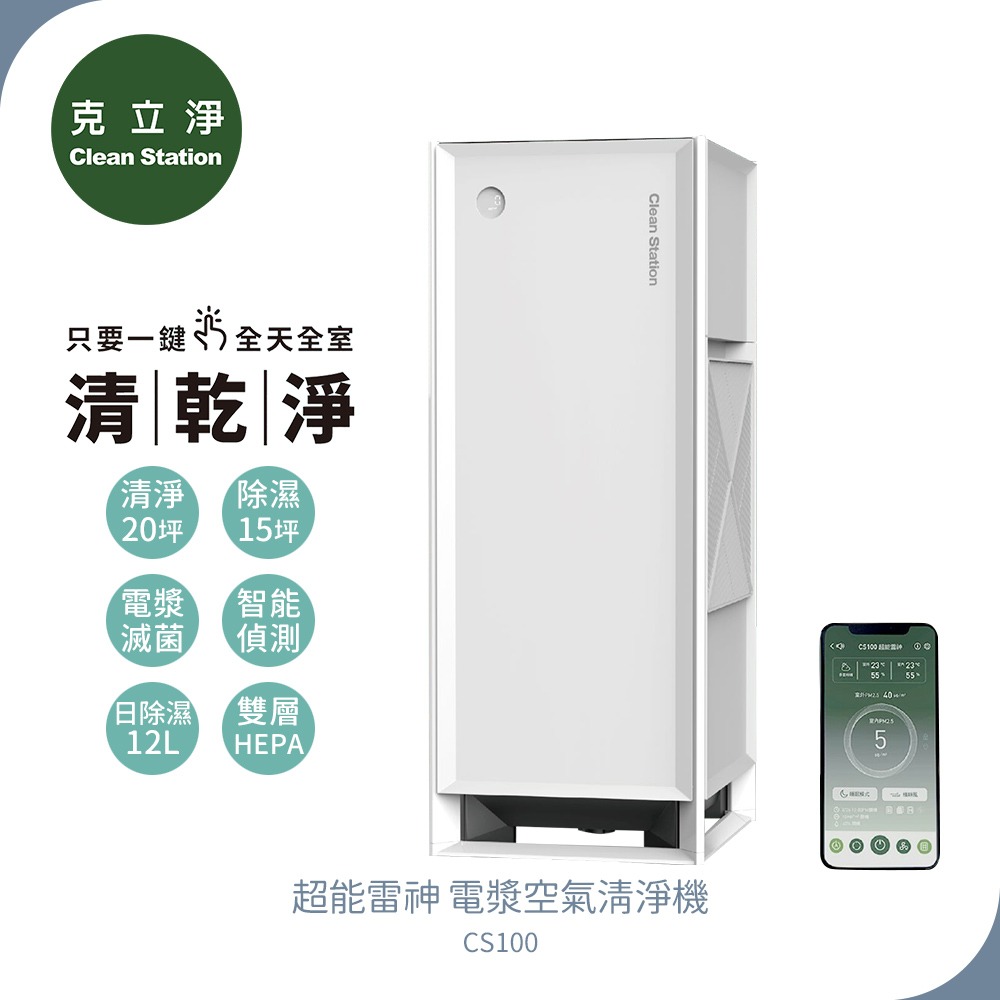 【CleanStation 克立淨】超能雷神 空氣清淨除濕機 CS100 慕白 除濕旗艦款 電漿清淨+智能除濕 雙機一體
