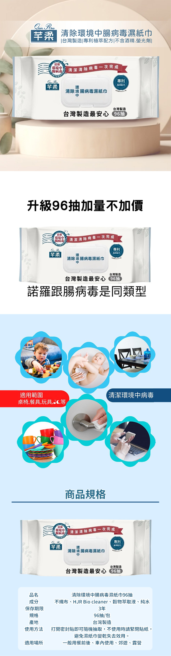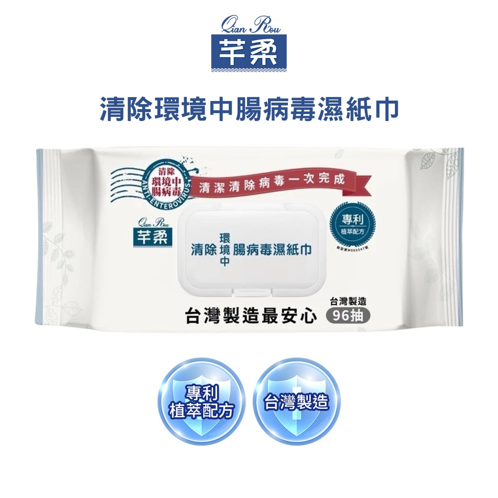 【芊柔】清除腸病毒濕紙巾 96抽 (一箱12包) 附蓋 純水 柔濕巾 腸病毒 私密處清潔 寶寶屁屁清潔 抗菌 流感 殺菌