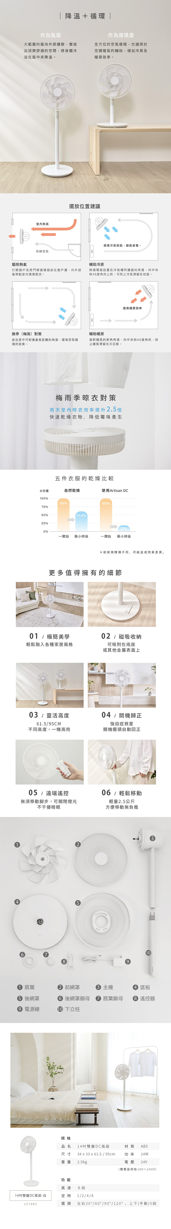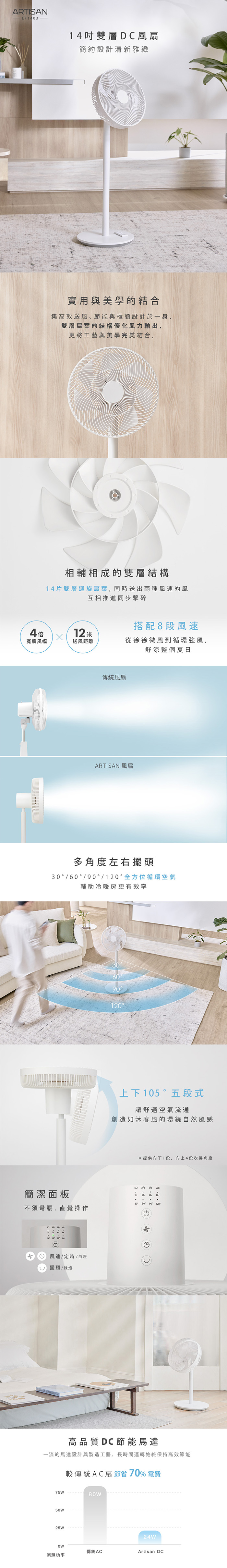 【ARTISAN 奧堤森】14吋雙層DC風扇 LF1403 電風扇 立扇
