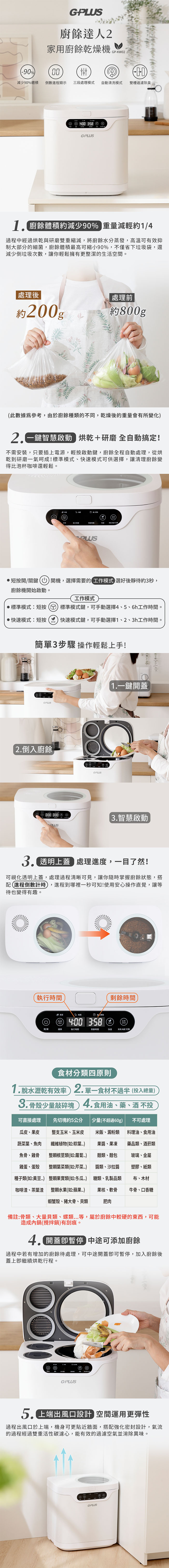 【GPLUS】 廚餘達人2 家用廚餘乾燥機 GP-KW02