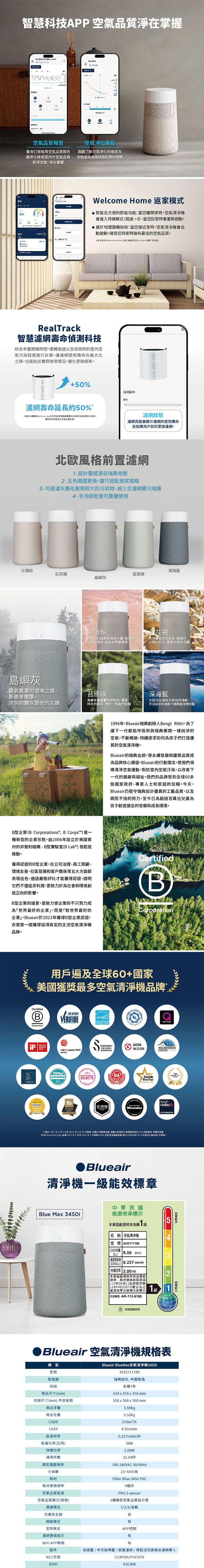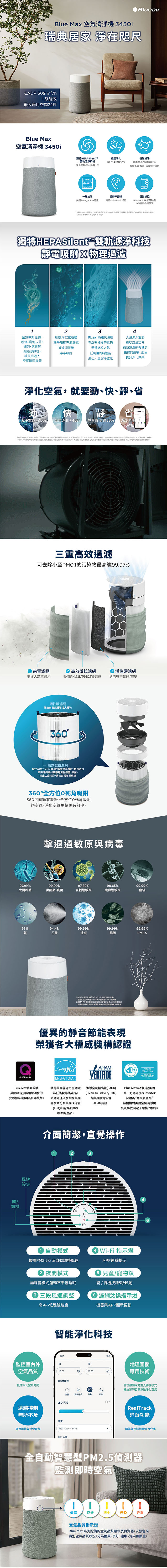 【Blueair】3450i BlueMax 智能wifi 空氣清淨機 最大適用22坪 輕巧 | 安靜 | 除異味